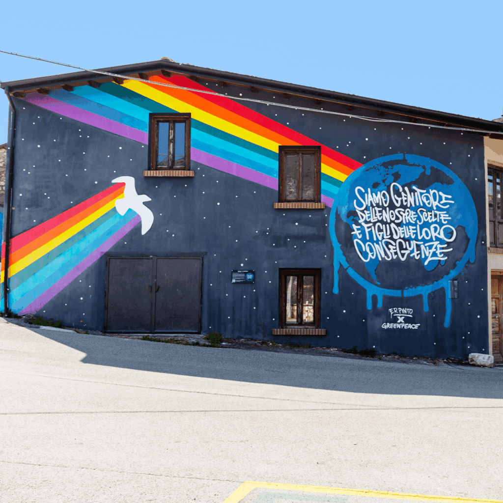 Correva l’anno 2017 quando le associazioni di Aielli iniziano a collaborare tra loro e con l’amministrazione comunale per introdurre una novità: la Street Art. Prende vita così la prima edizione di Borgo Universo, festival di arte urbana che ancora una volta vede coinvolto il tessuto sociale aiellese, storicamente proattivo e coeso, in questa nuova attività popolare. Murale dopo murale, Aielli inizia quasi in maniera innata un processo di riqualificazione e rigenerazione in termini di storia, cultura ed economia. Borgo Universo ha reso il piccolo paese una meta turistica nel quale sono nate nuove attività, si è generata una fitta rete di B&B e strutture e ricettive, gli enti già presenti sul territorio si sono modernizzati e attrezzati per offrire servizi all’avanguardia. La particolarità della Street Art di Borgo Universo sta in quello che i murales raccontano: parlano della storia e delle origini degli aiellesi, rifacendosi continuamente al tema dell’astronomia, filo conduttore di quello che diventerà nel corso degli anni un vero e proprio Museo a Cielo Aperto. La scelta dell’astronomia come tema principale è stata quasi naturale e bisogna attribuirne i meriti a Filippo Angelitti (Aielli, 1856 – Palermo 1931): astronomo rinomato che ha avuto all’epoca la possibilità di dedicarsi allo studio dell’universo e che ha inevitabilmente guidato gli aiellesi a sviluppare questo fascinoso interesse per l’astronomia. Il binomio astronomia – storia delle proprie origini non solo si rivela funzionale, ma permette di non dimenticare quello che è successo in passato in termini di riscatto, denuncia sociale e tradizioni che si mantengono vive stimolando anche la novità: è, forse, proprio la tradizione popolare che fa di Aielli un paese vivo con una comunità unita, come se fosse una grande famiglia.