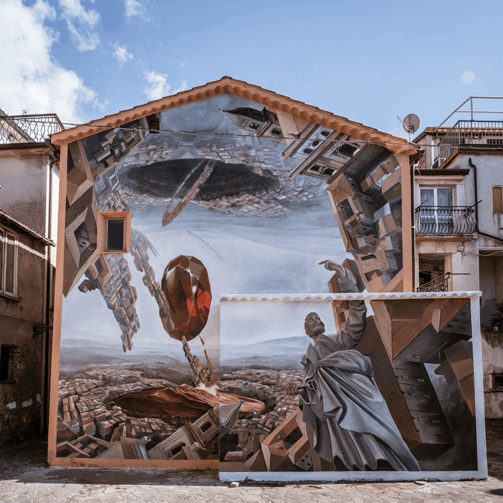 Gulìa Urbana non è solo un festival di street art. È un dispositivo narrativo e politico che unisce muralismo contemporaneo, processi partecipativi, laboratori, talk pubblici, residenze artistiche e attività educative. Ogni edizione è pensata come un intervento site-specific: si ascolta il territorio, si dialoga con le comunità, si costruiscono percorsi condivisi in cui l’arte diventa mezzo per riflettere sul presente, interrogare il passato e immaginare il futuro. La visione di Gulìa Urbana è semplice ma potente: usare l’arte per rigenerare, senza cancellare. Rimettere al centro le storie dei luoghi. Costruire un immaginario nuovo, dove la bellezza non è un lusso ma un diritto, e l’arte urbana è strumento di cittadinanza attiva. Gulìa Urbana è questo: un gesto poetico e politico, che parte da un muro e arriva lontano. Viviamo in città sempre più grandi, spesso dominate dal gigantismo della crescita: periferie grigie, infrastrutture imponenti, spazi funzionali ma privi di calore, relazione, identità. La modernità ci ha portato innumerevoli benefici – economici, tecnologici, culturali – ma in questo progresso si è perso qualcosa. Si è incrinato quel legame profondo con i luoghi che abitiamo, con le tradizioni, con l’anima dei piccoli borghi e delle città storiche che costituiscono la vera ricchezza dell’Italia. Gulìa Urbana si inserisce proprio qui: in questo vuoto, in questo bisogno di senso di appartenenza. Per restituire valore ai luoghi, per riattivare la memoria collettiva, per immaginare un futuro dove il cittadino torni protagonista e la città smetta di essere solo contenitore per diventare racconto, incontro, esperienza viva.