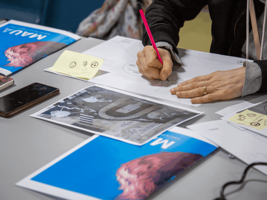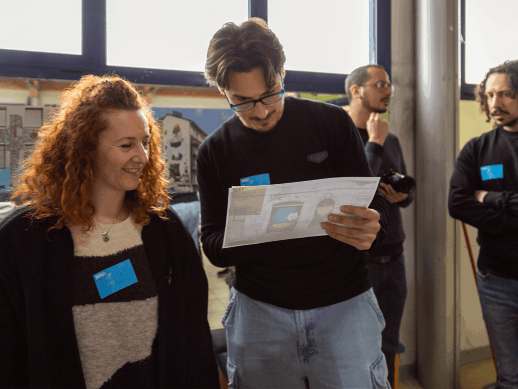 L’accoglienza, la curiosità, i primi sguardi. Dopo la presentazione del progetto MAUA Special Edition, i partecipanti hanno esplorato l’“Atlante” delle opere in realtà aumentata di Bepart: un archivio vivente di esperienze e visioni. Poi la scelta: quali murales aumentare, quale storia riscrivere in digitale. Tra bozzetti e prototipi, le idee hanno preso forma — immagini che potevano muoversi, suonare, reagire.