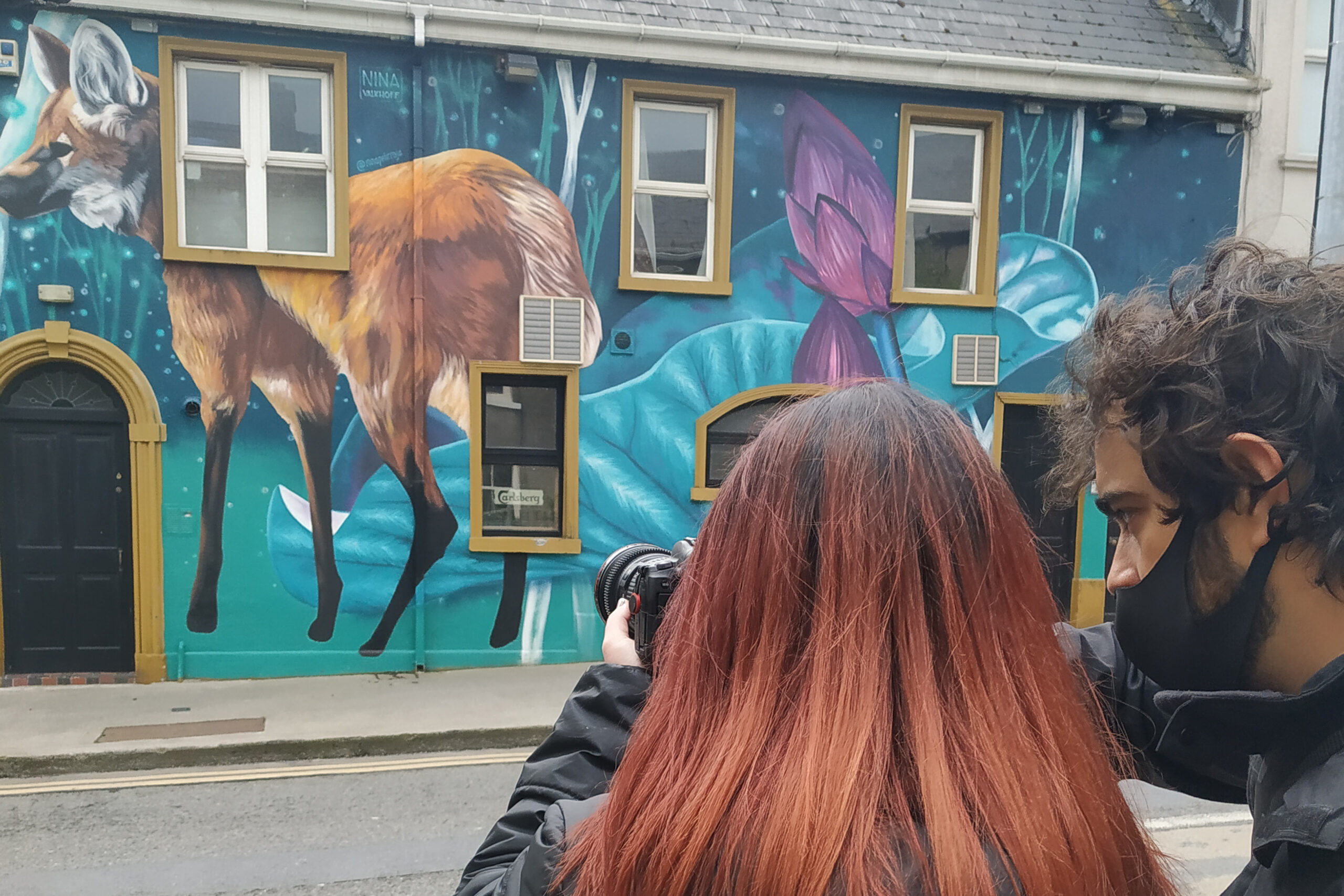 La maggior parte dei murales scelti per questa prima sperimentazione in Irlanda tratta il tema del rispetto dell’ambiente, come Ephemera di Russ dedicato a Madre Natura, Fallow Fawn (Il Cerbiatto) di Dan Leo, The Egret (l’Airone) di Curtis Hylton e Maned Wolf (I Crisocioni) di Nina Valkhoff. Altri celebrano momenti storici per l’umanità, come lo Spacer, icona ricorrente dell’artista Shane Sutton, dipinto nel ventennale dello sbarco sulla Luna. C’è poi Big Jackie di Caoilfhionn Hanton & Niall O’Lochlainn in omaggio all’allenatore Jack Charlton, che ha portato la nazionale irlandese di calcio al successo internazionale. Mentre gli animali della fattoria che brucano tra elementi pixelati in “Crossroad” di Omin (il titolo trae spunto dal fatto che è il murales è collocato all’angolo fra due vie) hanno ispirato due animazioni digitali distinte.
